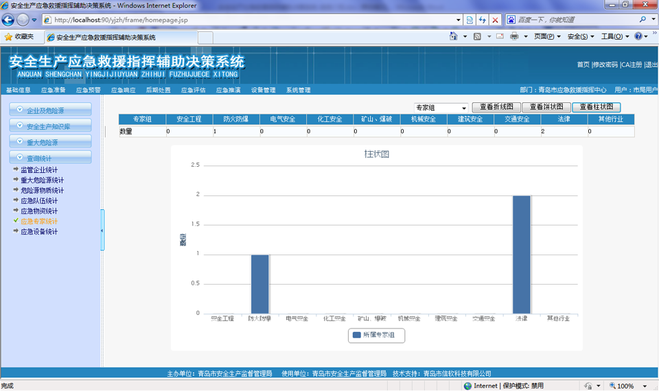 以醒目的報表形式,對重大危險源分布、監(jiān)管企業(yè)、危險物質(zhì)、應(yīng)急資源進(jìn)行統(tǒng)計列表展示,并支持多層次頁面鏈接方式查詢與瀏覽重大危險源、企業(yè)綜合信息,支持鉆取功能。并在此基礎(chǔ)上進(jìn)行數(shù)據(jù)挖掘和深入分析,查詢結(jié)果既可以顯示為原始的文本數(shù)據(jù)也可以分類統(tǒng)計總和,提供柱狀、餅狀等各種形式的圖形。
