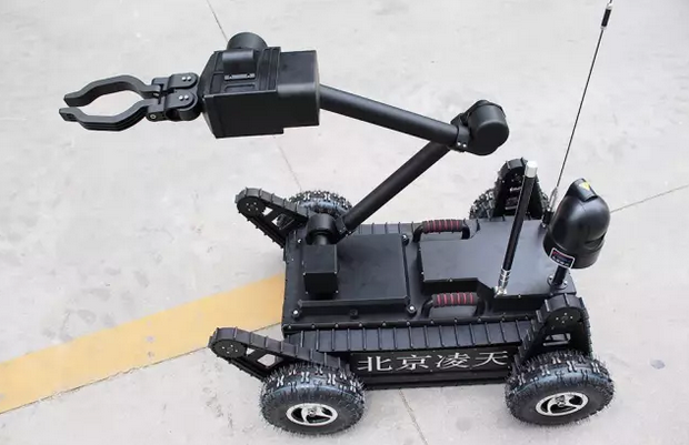 機(jī)械臂部分配備爆炸物銷毀器、瞄準(zhǔn)器,能現(xiàn)場對(duì)爆炸物進(jìn)行摧毀;