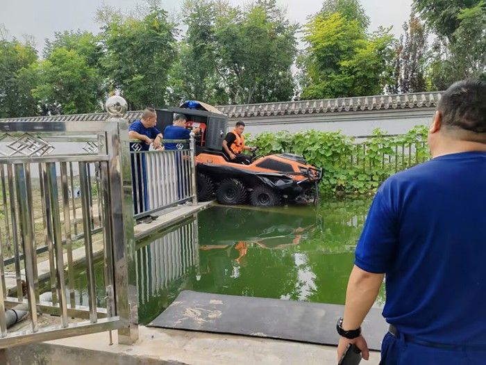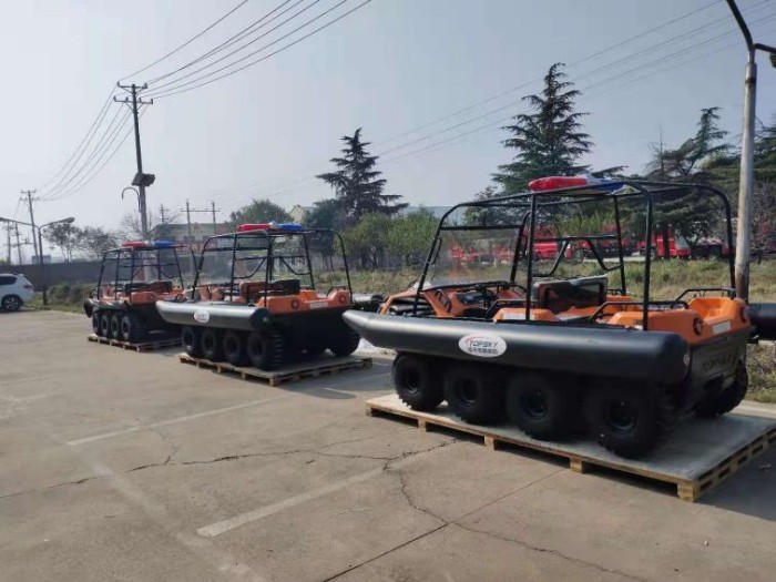 在復雜惡劣的地形條件和自然環(huán)境下,水陸兩棲全地形車可以讓搜救隊員和攜帶的救援裝備快速到達救援現場,減少徒步帶來提供消耗,完成最后一公里最好五分鐘緊急救援任務。水陸兩棲全地形車可配備點到絞盤、救援擔架組件、探照燈、警示燈、警報器、脫鉤、破拆工具等裝備, 給救援團隊提供救援保障,更安全的解救傷員和疏散群眾。