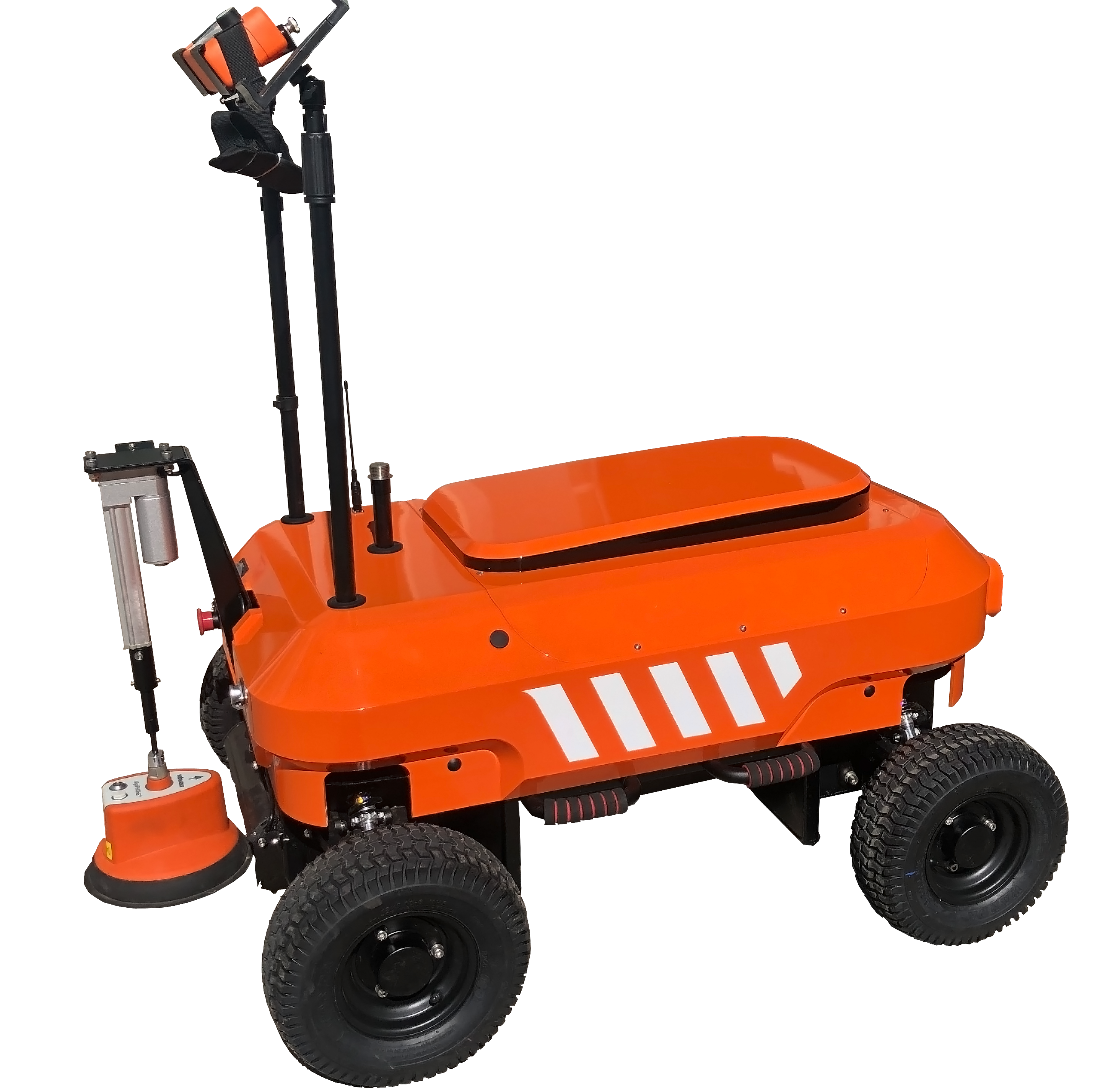 RXR-C11全地形探地雷達(dá)機(jī)器人采用鋰電池電源作為機(jī)器人動(dòng)力源,使用無(wú)線遙控的方式遠(yuǎn)距離操控機(jī)器人及所搭載設(shè)備。整機(jī)采用四輪獨(dú)立驅(qū)動(dòng)、四輪差速轉(zhuǎn)向以及前后雙橫臂獨(dú)立懸架,具有IP65防塵防水,能夠在多種復(fù)雜環(huán)境運(yùn)行,搭載探地雷達(dá)、測(cè)距輪設(shè)備,可用于復(fù)雜環(huán)境地下工程勘察、市政管線、道路橋梁、隧道等地質(zhì),質(zhì)量,缺陷,病害檢測(cè),從而代替人進(jìn)行高效率作業(yè)。