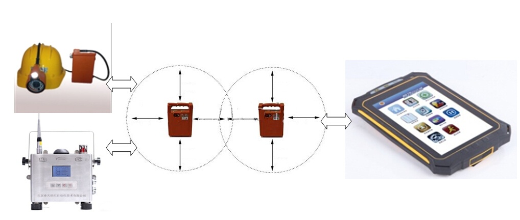 該系統(tǒng)采用無線連接方式的信號中繼與傳輸,應(yīng)急通信網(wǎng)絡(luò)的通信距離可達20公里。無線通信網(wǎng)絡(luò)采用自組織、自愈合方式快速形成多跳鏈狀或網(wǎng)狀網(wǎng)拓撲結(jié)構(gòu),無線通信距離不小于2000米,具有快速部署、高帶寬、低時延、可靠性強等特點。井下救援人員或工作人員,通過佩戴礦用本安型平板計算機、配套的低照度攝像頭自帶語音通話、無線中繼器、多參數(shù)測定儀等裝備,將現(xiàn)場的實時圖像、語音、環(huán)境參數(shù)等信息實時回傳到指揮平臺,調(diào)度指揮人員可以實時了解現(xiàn)場情況,并對現(xiàn)場人員進行調(diào)度指揮。