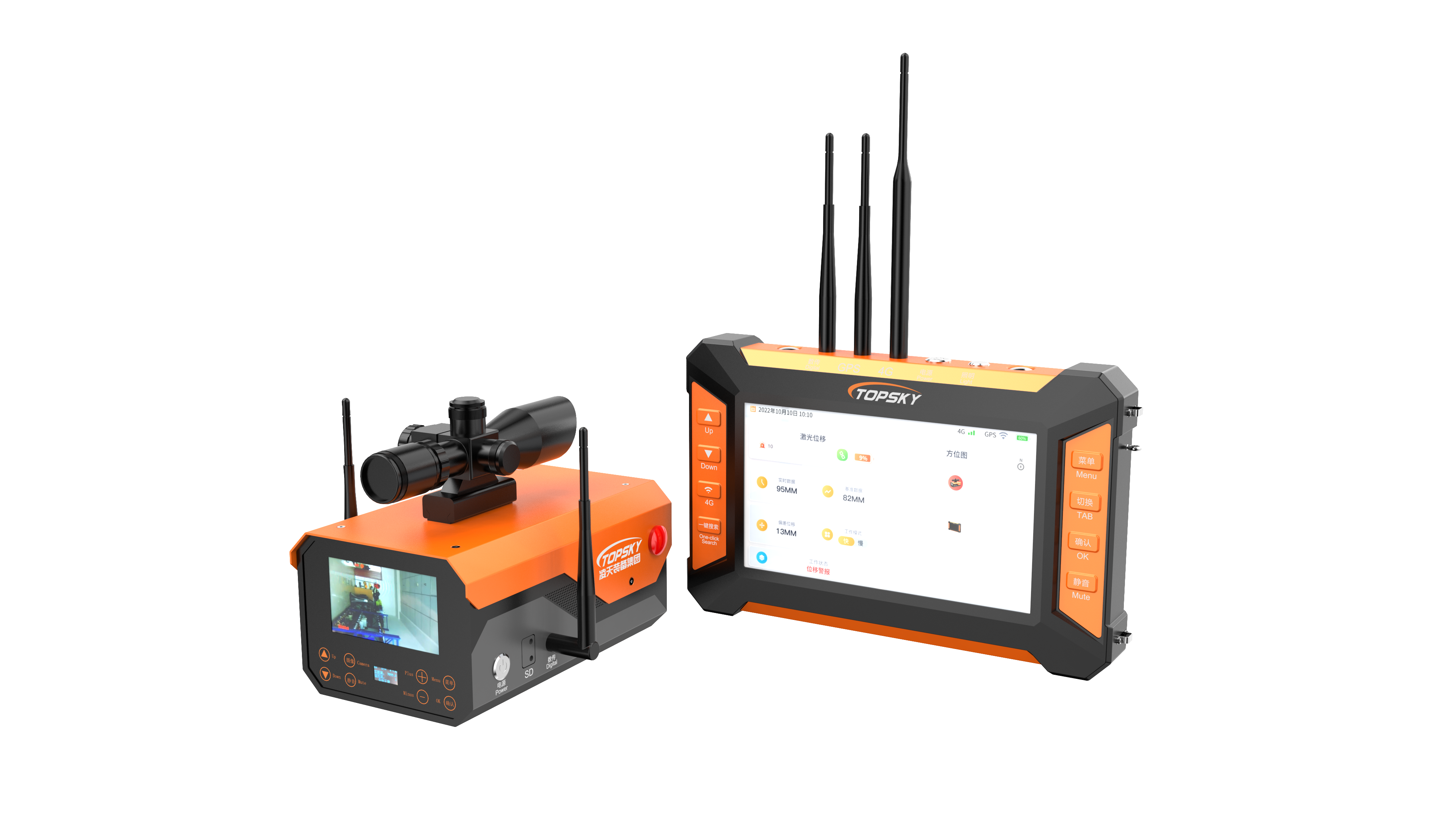 配備便攜主機,支持無線遠程操控,雙向無線傳輸,可調(diào)節(jié)和重置監(jiān)測儀報警數(shù)值,聯(lián)動報警。具有GPS定位和一鍵搜尋功能,當(dāng)傾角監(jiān)測儀被埋于廢墟中時,可通過一鍵搜尋進行查找。